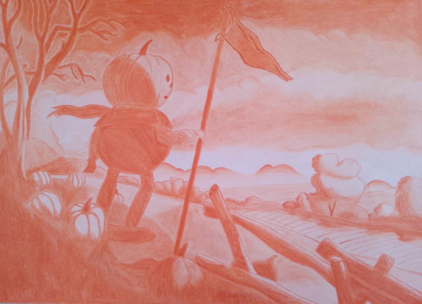 Materiales: Cartulina A3, Lápiz sanguínea, borrador, difumina o pincel.